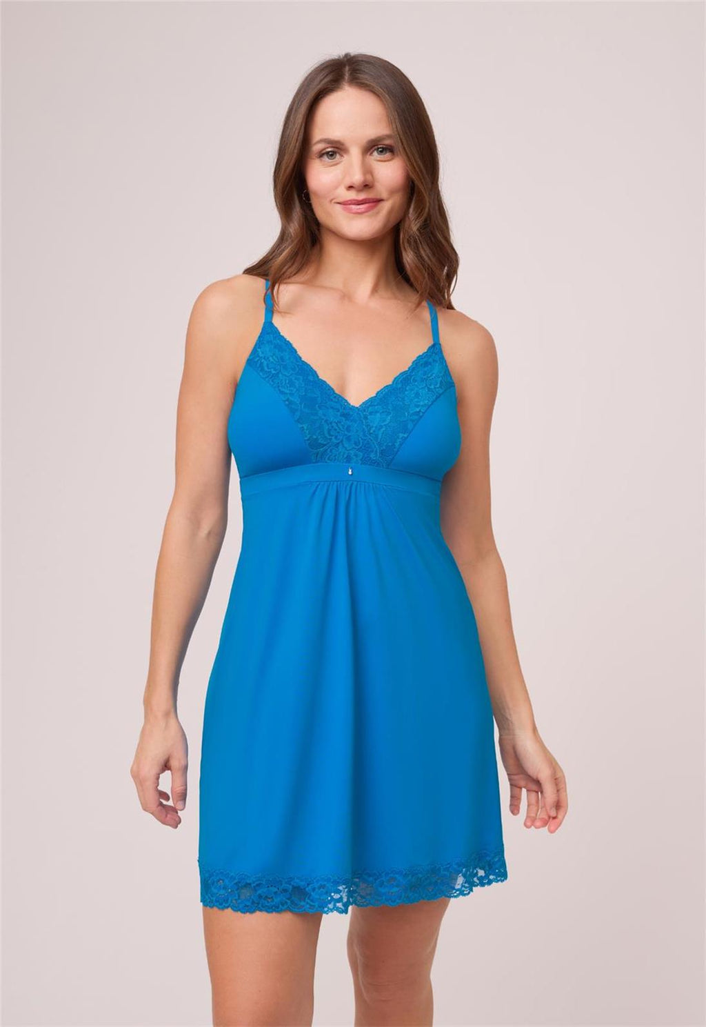 Bonne nuit ! Cette nuisette trapèze flatteuse, confectionnée dans un tissu ultra-doux, cache un secret : elle est aussi résistante que belle. La dentelle florale extensible et lisse de l'encolure est doublée de tulle pour un maintien optimal, et le buste en microfibre est doublé pour sublimer votre silhouette naturelle. Caractéristiques: • Chemise de nuit flatteuse à la coupe trapèze, en microfibre ultra-douce et dentelle • Buste doublé de microfibre pour un soutien modéré • Détail au niveau de l'encolure en dentelle florale extensible et lisse, doublée de tulle extensible pour un meilleur maintien • Joli détail en dentelle le long du bas • Bretelles souples et réglables • Longueur de 86 cm (34 pouces) depuis les épaules pour la taille moyenne Composition : 85 % nylon, 15 % élasthanne. Fabrication éthique. Instructions de lavage : Lavage à la main à l'eau froide OU en machine dans un filet de lavage, cycle délicat • Suspendre pour sécher Tableau des tailles S 30C-30D-32B-32C-34A M32D-32E-32F-34B-34C-34D-34E-34F-36B L 34G-36C-36D-36E-36F-38B XL 36G-38C-38D-38E-38F XXL 38G-40C-40D-40E-40F XXXL 42C-42D-42E-42F Style n° 9394
